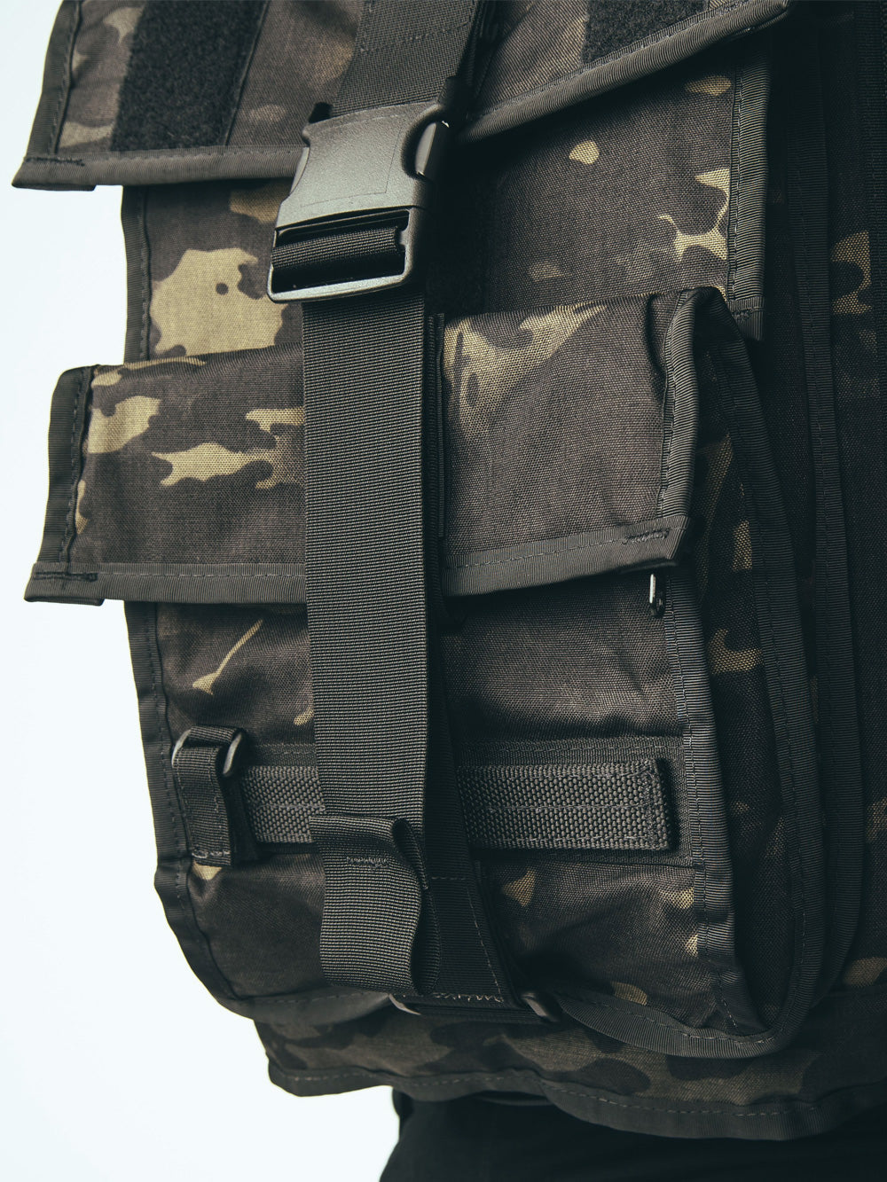 ウレタンコーティングのファスナーポケットが1つと、ユーティリティポーチを追加できるアネックスレールが1つ。ベルトループとU字ロックストラップにより、ヒップツールパックとしても使用可能。
