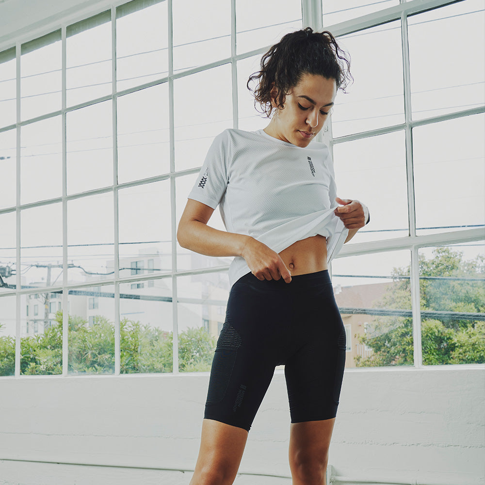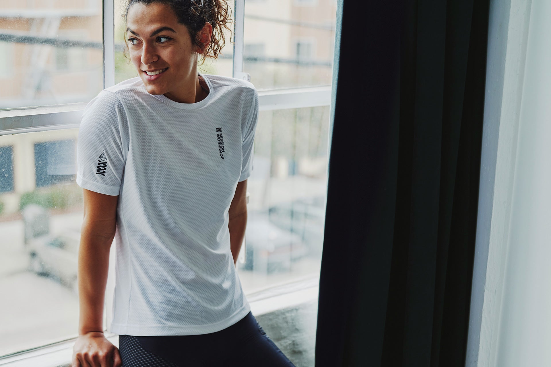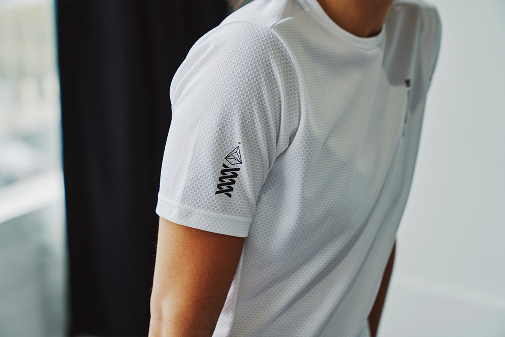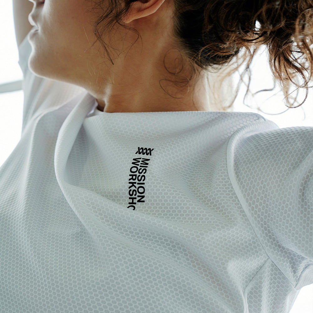 ミッション・プロ・テックTシャツは、通気性と速乾性のために表面積を飛躍的に増大させるイタリア製のオープンニット・ディメンション・メッシュで構成されている。吸汗速乾性は2つの異なる糸を使用することで実現。ベースレイヤーとしても、ジャージーの代わりとしても、また単に高機能Tシャツとしても完璧に機能する。