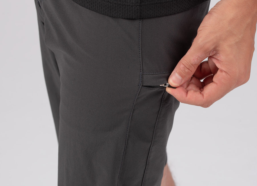 トラバース・ライディング・ショーツは動きやすさを追求。Mission Workshop 、片手で調節できる金具が付いたウエストベルトは、いつでも完璧なフィット感を保証する。4ウェイ・ストレッチのアメリカ製素材は吸汗速乾性に優れている。濡れても滑りにくく、常にドライな状態で次のライドができる。