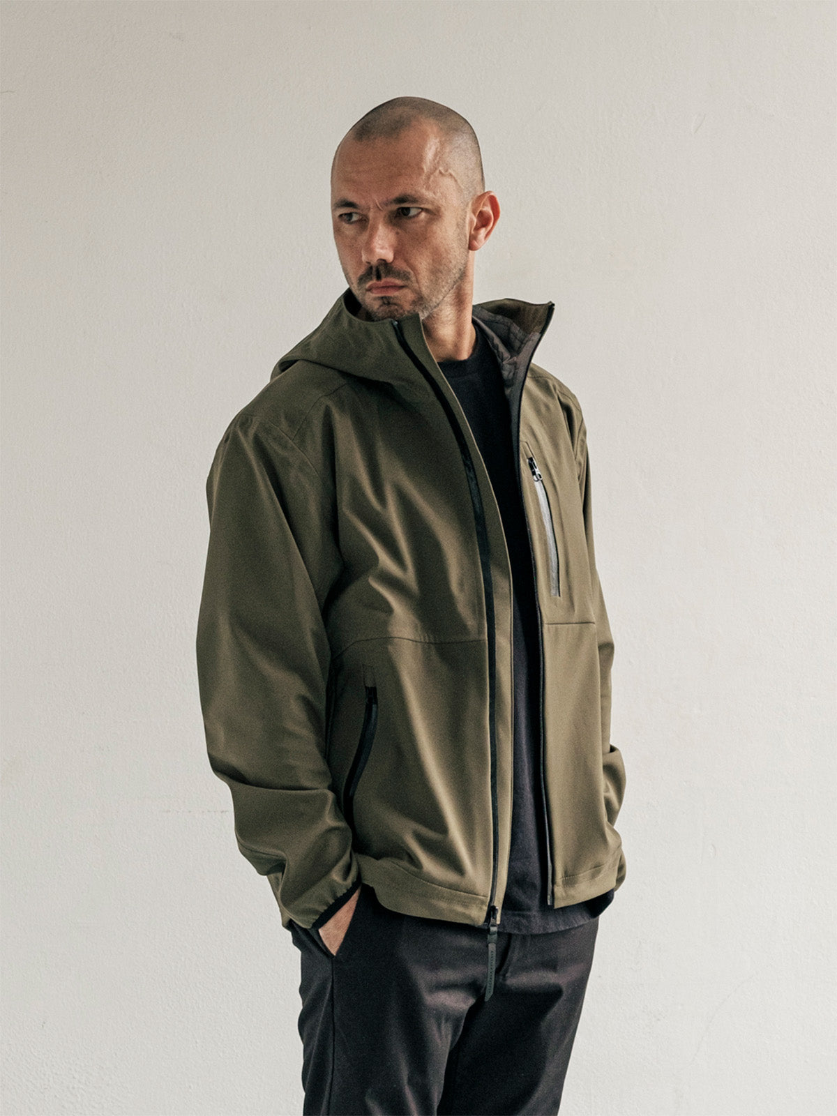 Constructed with Brookwood Assault® 3-layer fabrics. This high-spec fabric is 100% made in USA and features an advanced DWR that is treated on a molecular level. Each individual fiber is coated to ensure a more open, porous membrane, faster vapor transmission, and increased ventilation. MVTR(Moisture Vapor Transfer Rate): minimum 20k g/m²/24hr. Water Resistance: minimum 20k mm