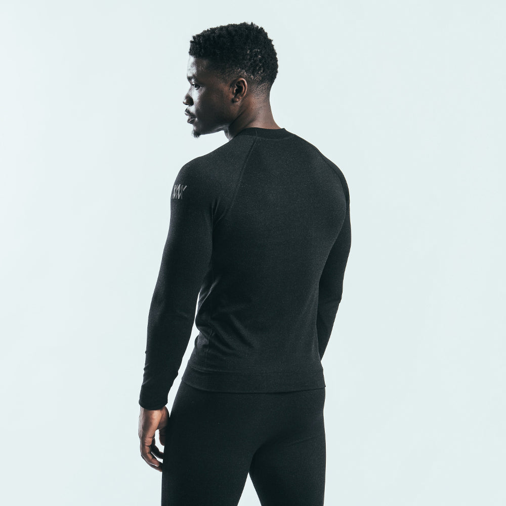 シームレス構造により、ベースレイヤーの胴体部分は一枚のニットで構成され、かさばりや摩擦による斑点の可能性を最小限に抑える。これにより、パネルを縫い付けることなく、複数の生地厚をウェアに組み込むことができる。シームレス・ベースレイヤーは通気性に優れ、暖かいときは涼しく、涼しいときは暖かく保つ。