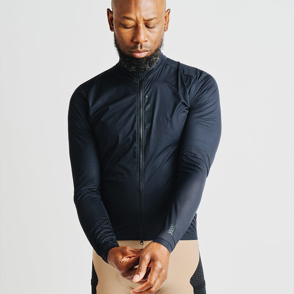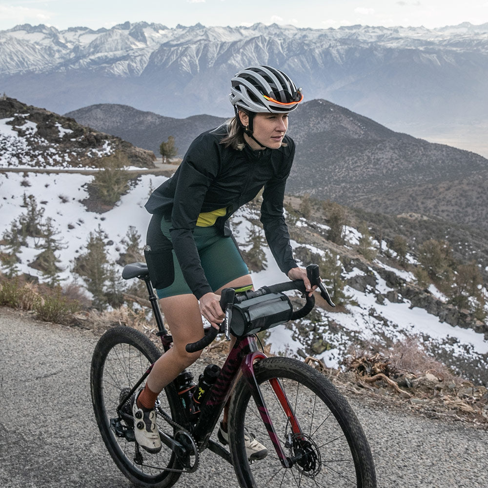 アルトスフィア・ジャケットで、私たちは可能な限り軽量で最先端の2層構造サイクリング・シェルを作ることを目指した。高出力アクティビティ用に設計されたこのシェルは、防水メンブレンを備えた超軽量ストレッチ・テキスタイルを使用し、自由な動きと通気性を高めるためにテープなしの縫い目を特徴としている。