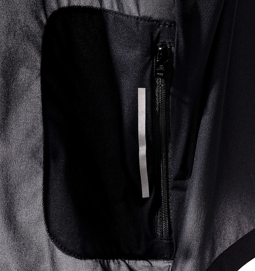 メインボディの生地には、ピデジのZero Wind®を採用した。70年にわたり継続的な研究と生地の革新に取り組んできたPidigiは、イタリア製のZero Wind®ファブリックは完璧に近い。53gm/m2という驚異的な軽さを誇るこの2レイヤー素材は、雨風に対する強力なバリアとなる。スマートなメンブレンは防水性と親水性を兼ね備えており、汗は体から発散するが外からの水ははじき、激しい運動をすればするほどメンブレンは透湿性を増す。防水性を高めるため、シェルには非フッ素系エコロジカルDWR撥水・撥土のBIO-WRテクノロジーが施されている。