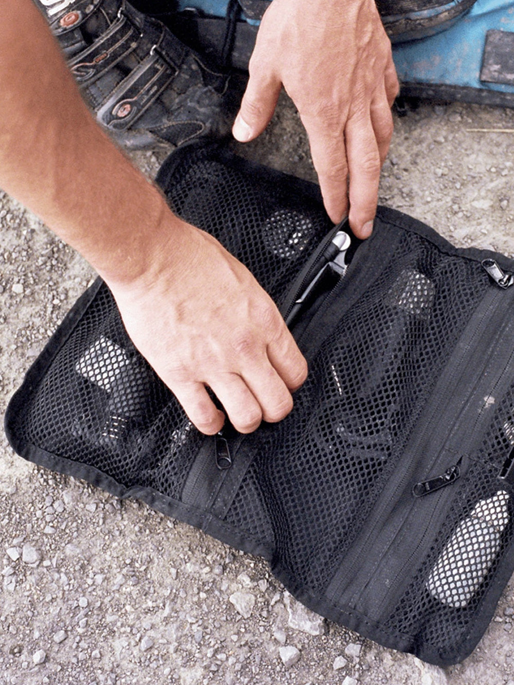 ハイドレーションパックには合計4つの耐候性エクステリアポケットがあり、ギアに簡単にアクセスできる。付属のツールロールは取り外し可能で、必需品を整理することができる。