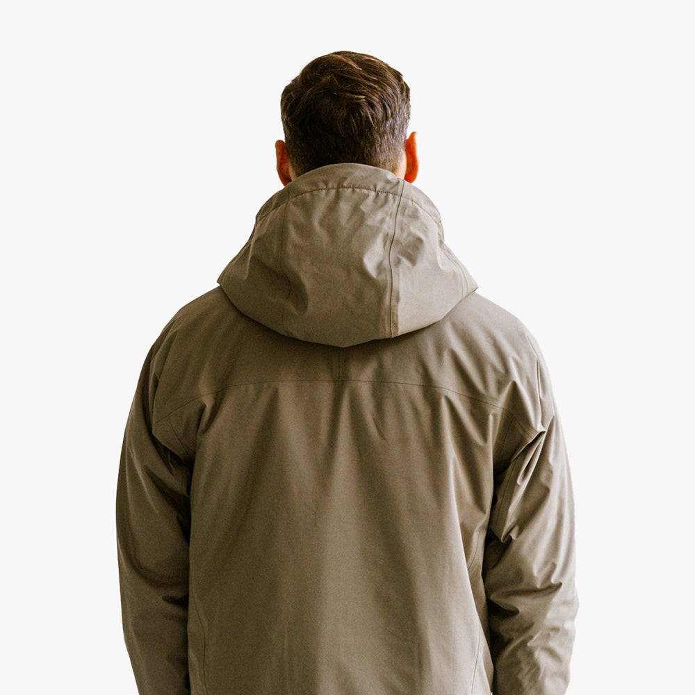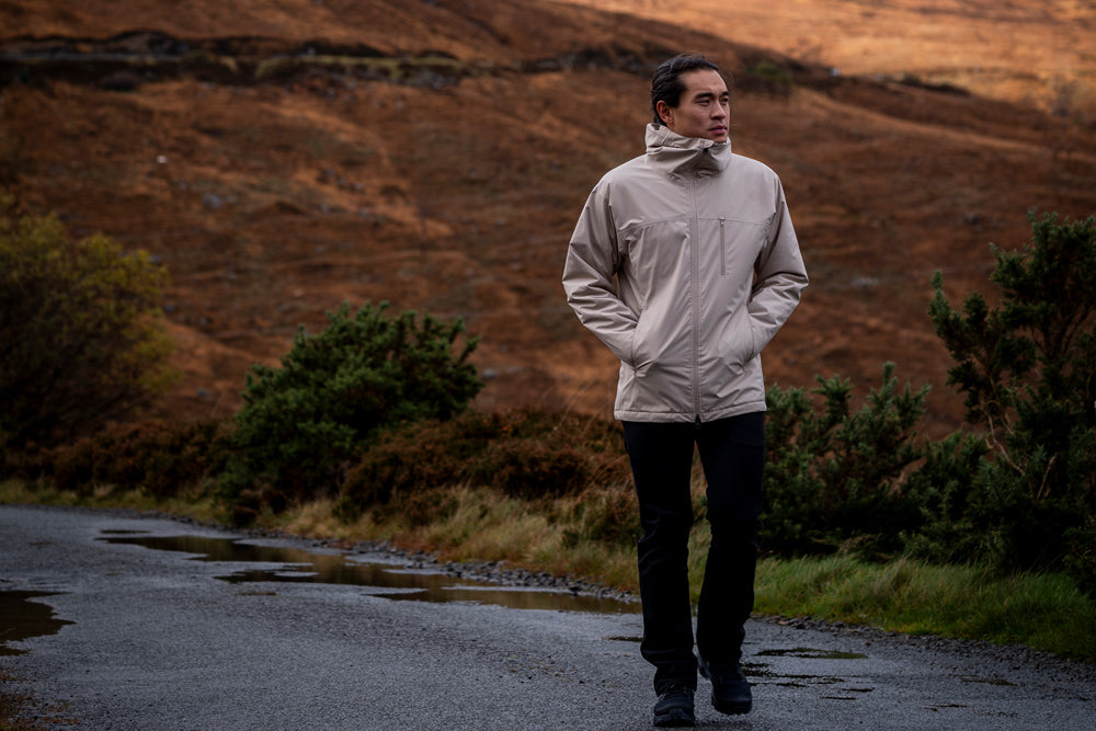 3層構造のシェルはシームテープ加工が施され、雨を防ぎながら蒸気を積極的に逃がすメンブレンを備え、プリマロフト・インサレーションとの相乗効果で体温を調節する。シェルには環境に優しいC0 DWR(耐久性撥水)加工を施し、雨を弾きます。