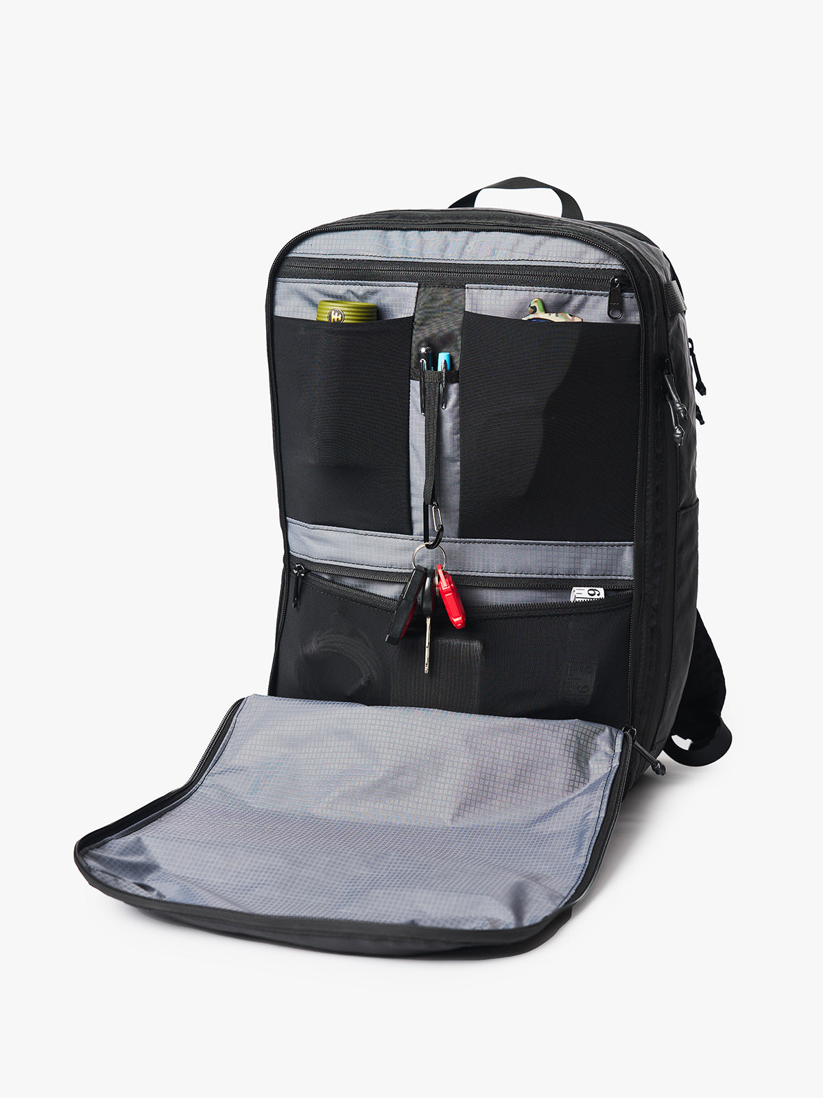 A HIGHLY ORGANIZED PANEL LOADING BACKPACK DESIGNED FOR TRAVEL AND EVERYDAY CARRY