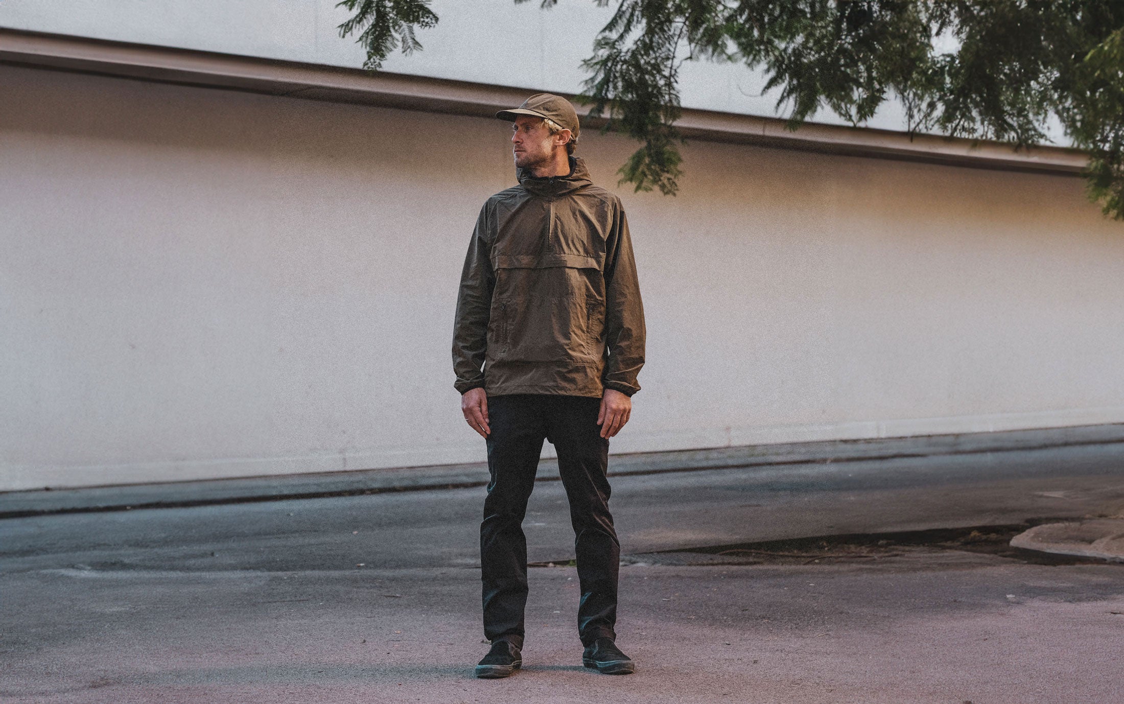 The Mission Anorak blends classic design and manufacturing in Portugal with performance woven textiles from Italian mill Olmetex. The fabric has a crisp durable hand and is finished with a PFC-free DWR for weather resistance and quick drying. Woven to perfection in Italy using a precise combination of materials: 49% polyester for durability and quick drying, 33% nylon for structural integrity, and 21% cotton for breathability and softness.