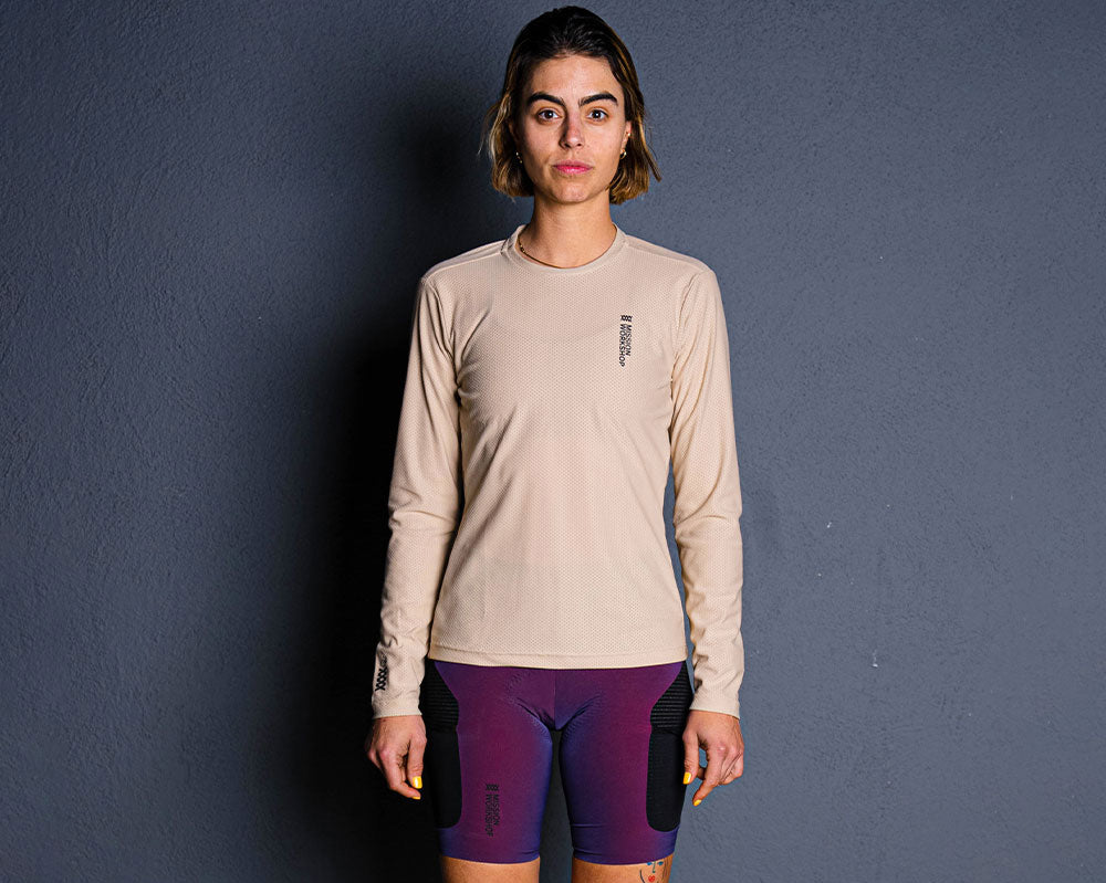 ミッション・プロ・テック・Tシャツ:LSは、通気性と速乾性のために表面積を飛躍的に増大させるイタリア製のオープンニット次元メッシュで構成されている。吸汗速乾性は2つの異なる糸を使用することで実現。ベースレイヤーとして、またジャージの代用として、あるいは日常着としての高機能ロングスリーブTシャツとして完璧に機能する。