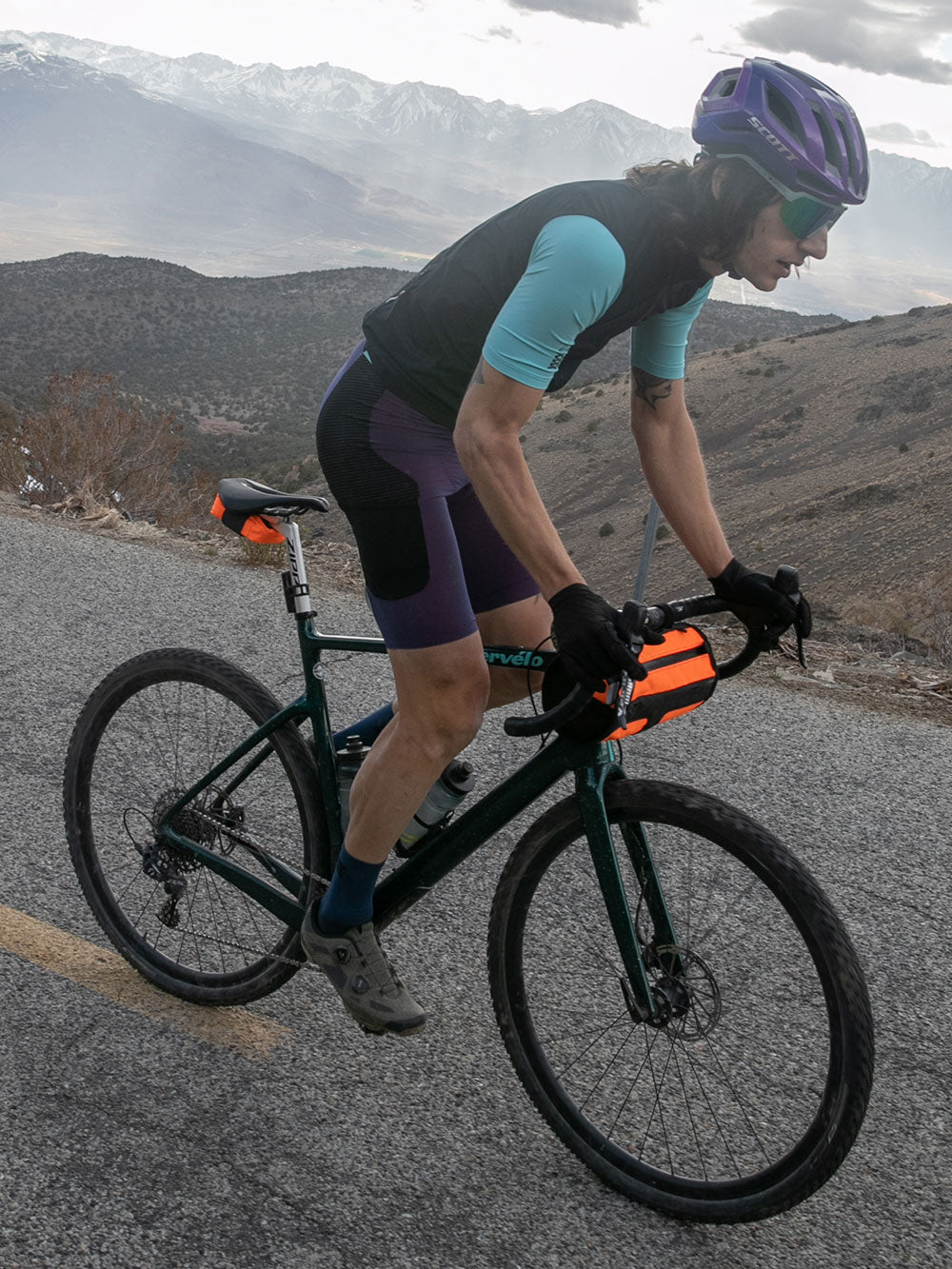 ミッション・サドルバッグは、ロード、MTB、グラベルバイクのシートに取り付け可能で、すべてのドロッパーポストに対応する。防水性の高いディメンション・ポリアントVXファブリックとハイパロンを使用し、耐候性と速乾性に優れている。コンパクトなデザインで、YKKアクアガード・ジッパーと4つの内部伸縮ポケットを装備し、ツールを安定して整理できる。