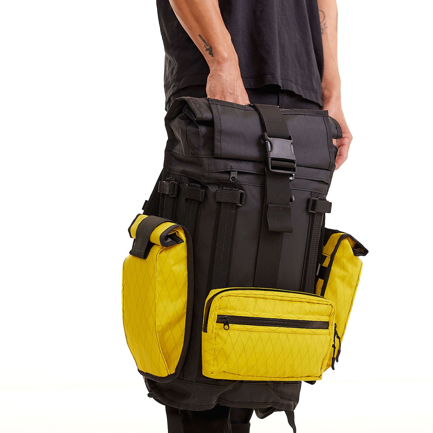 Constructed from Dimension Polyant X-Pac® fabric, the Notch delivers exceptional durability and weather resistance with minimal weight. Its laser-cut, low-profile waist belt provides a secure, ergonomic fit and tucks away cleanly when not in use. With the addition of the optional four-piece Arkiv® buckle set, the Notch connects directly to any Arkiv® pack for a stable, integrated setup.