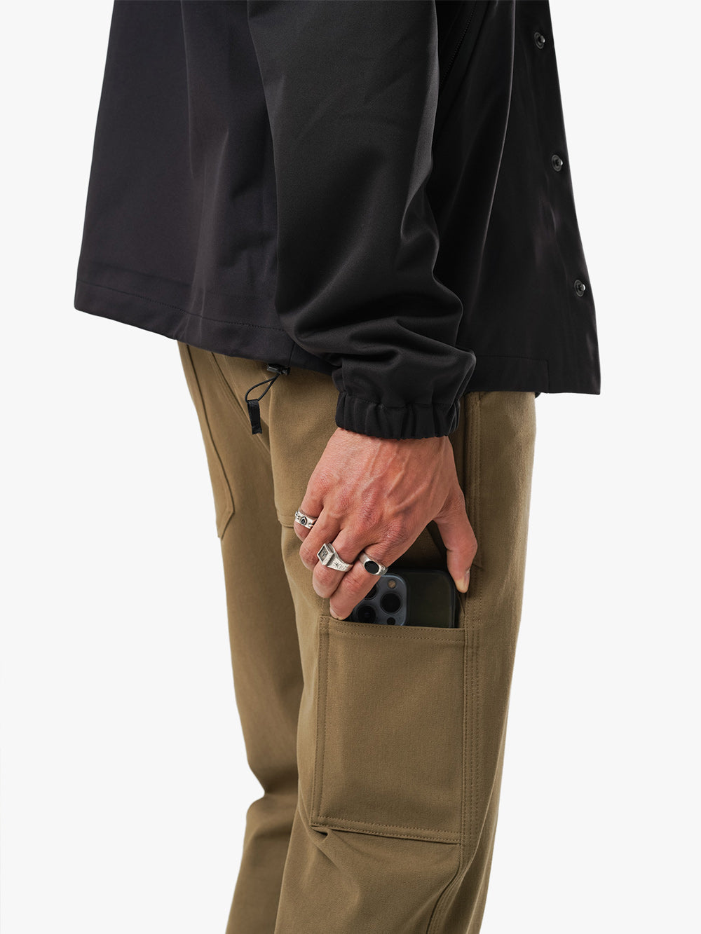 パラゴンは自然でソフトな風合いと高い通気性を備え、3本針縫製、7つのポケット、ユーティリティ・ループを備えている。さらにパラゴンにはDWR(耐久性撥水)加工が施され、小雨に強く速乾性に優れている。その結果、比類のない多用途性と自由な動きやすさを備えた、非常にタフなデイリーユースのパンツが誕生した。