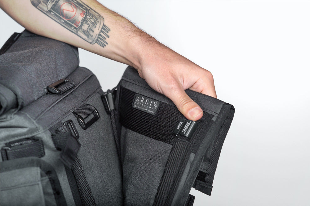 このバックパックは「ロールトップ」モードでも従来の「フラップダウン」構成でも使用可能で、携帯電話やパスポートなどの収納に最適なジッパー式外部ポケットが1つ、書類に最適なジッパー式内部ポケットが1つあり、最大16インチのMacBook Proが収まる。Arkivバックパックは、複数の耐候性コンパートメント、ウレタンコーティングされたYKKジッパー、防水素材、内部フレームシートを備えています。
