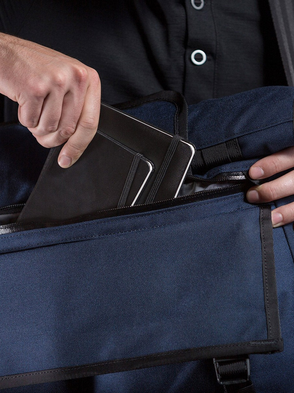 メッセンジャーバッグのシェルには1000Dコーデュラを使用し、ライナーには完全防水のTPU裏地を使用したリップトップナイロンを使用しています。デュラフレックス・プラスチックのハードウェアとYKKジッパーが、この多用途なデイリーキャリーメッセンジャーバッグを完成させています。