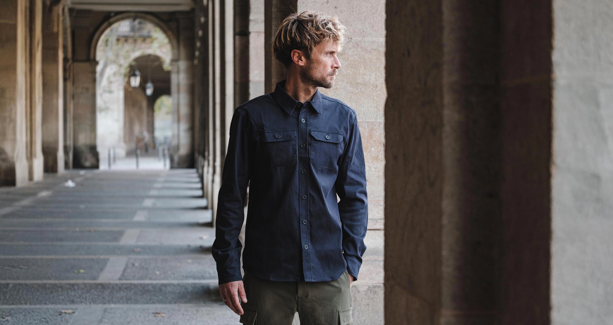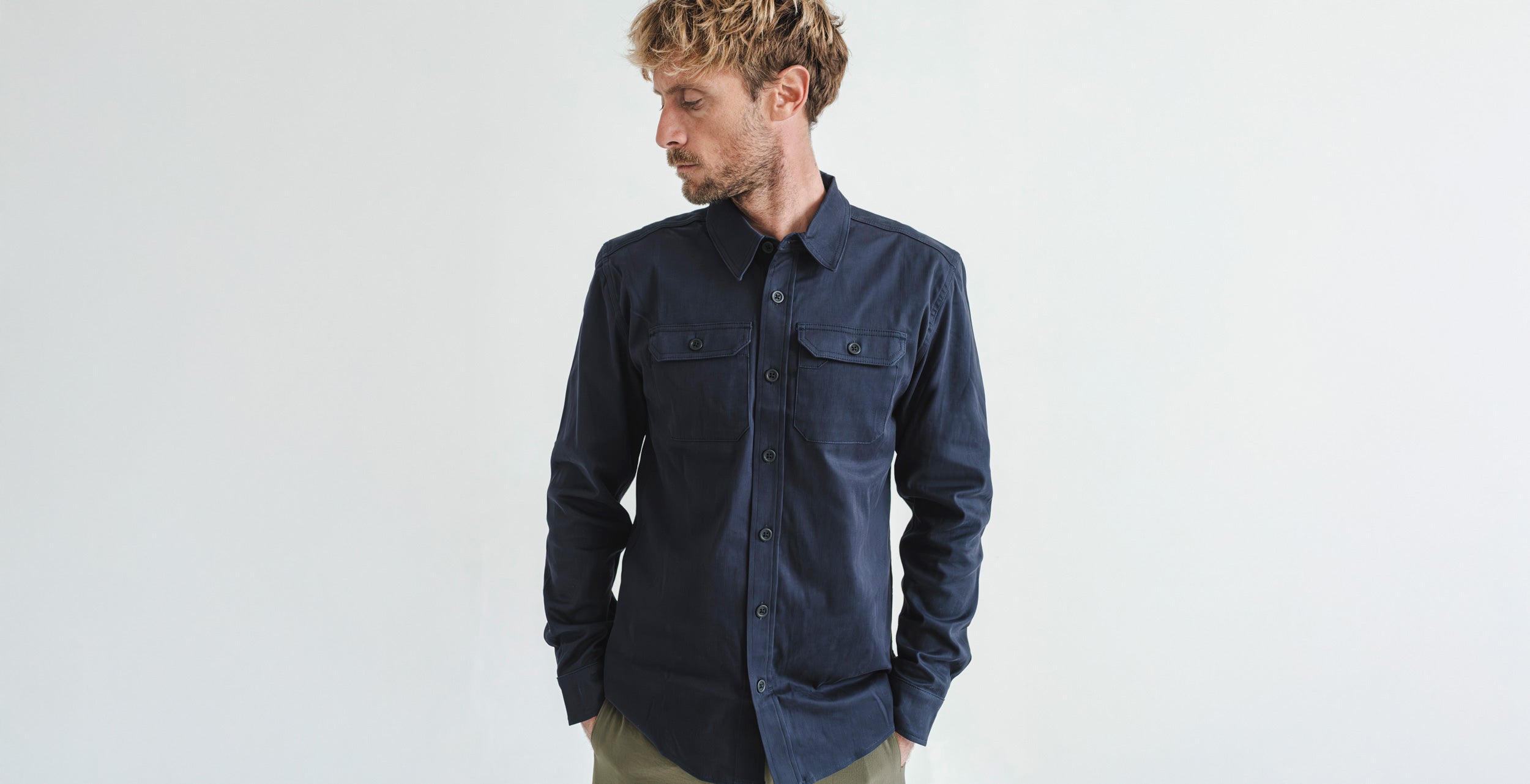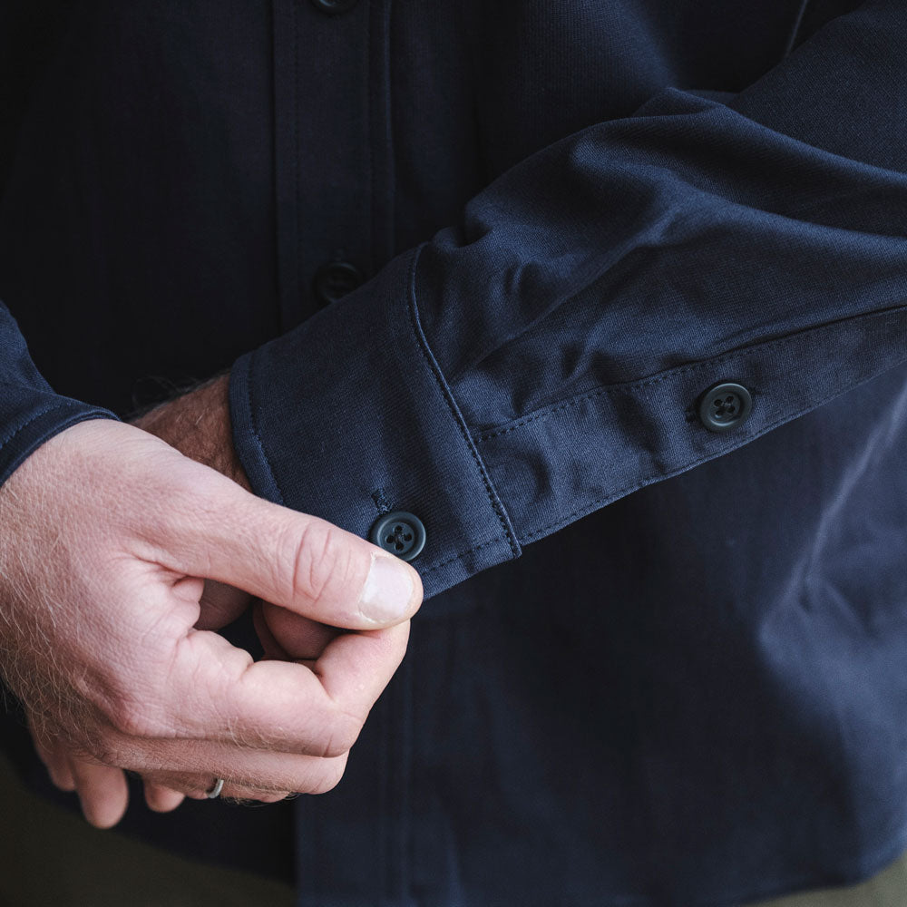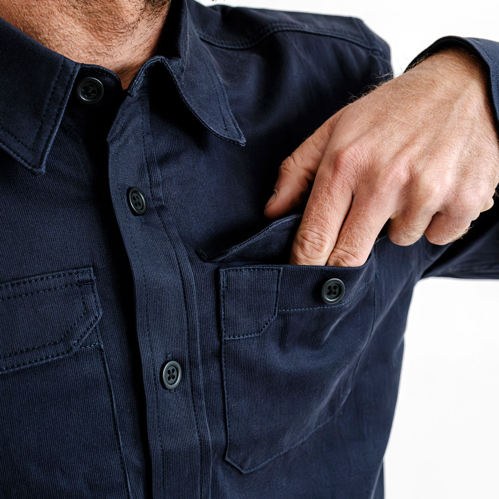 The Sansom OG is our classic mid-weight button up built from the original Japanese stretch cotton that defined the first Sansom shirt. The prewashed fabric offers easy mobility and a clean drape, with a subtle texture that delivers a tough yet refined feel. It works well on its own as a shirt or as a lightweight alternative to a jacket. Details include dual chest pockets and articulated sleeves for improved range of motion. This is a versatile everyday piece that dresses up or down with ease and earns a permanent place in any wardrobe.