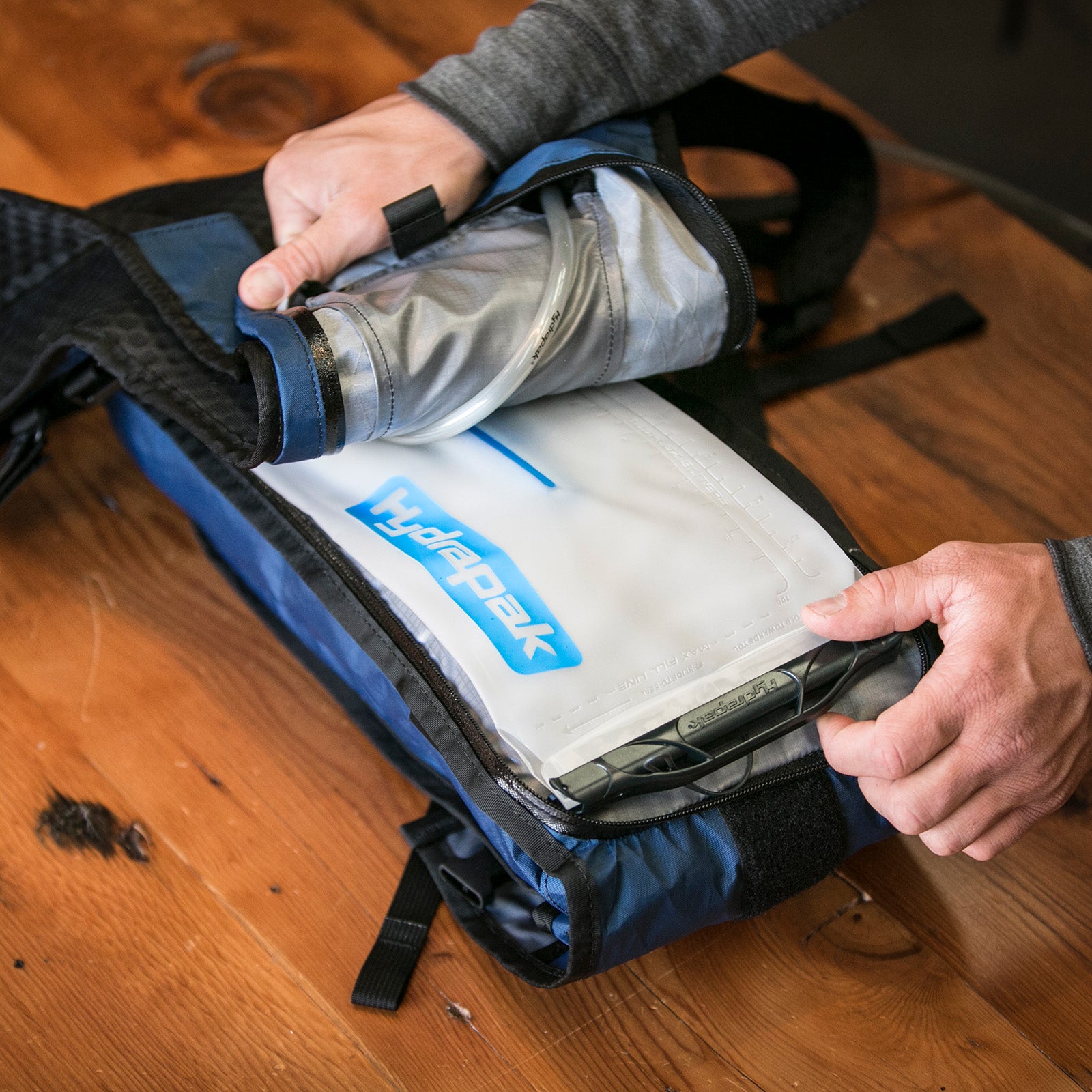 外側に2つの水筒ホルダーを備え、独立したハイドレーション・コンパートメントは容量3Lまでのリザーバーに対応。